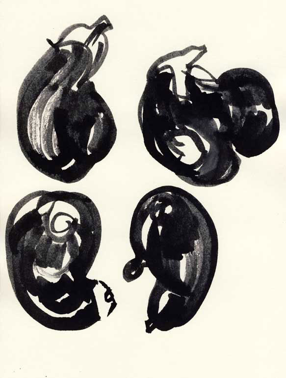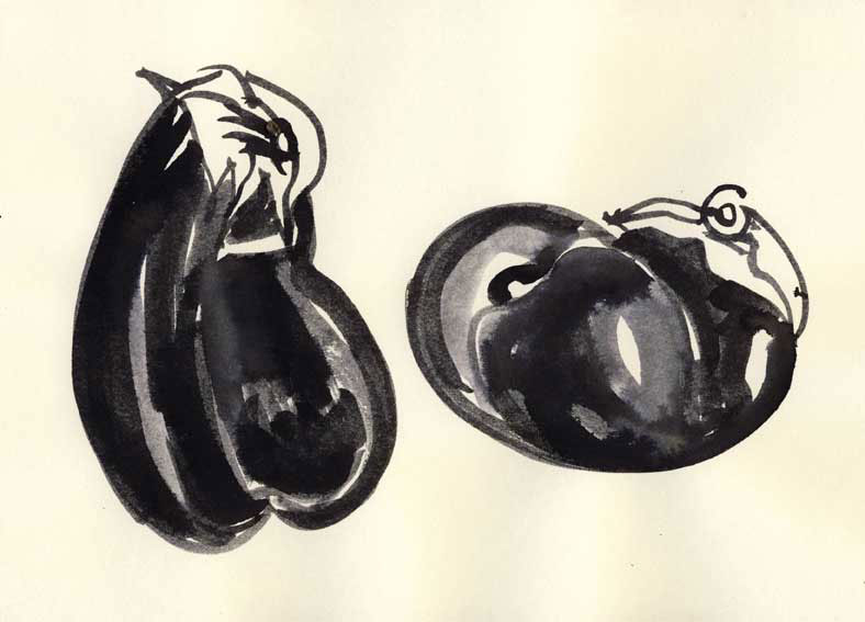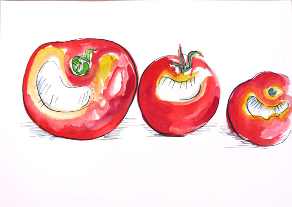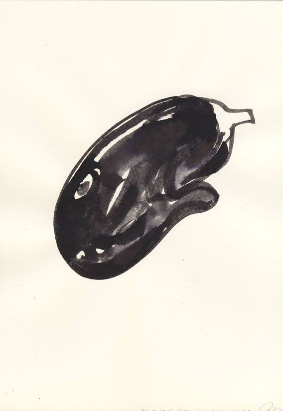 Christine Kriegerowski befasst sich voller Appetit mit Lebensmitteln. Sie geht einkaufen, zeichnet, fotografiert und kocht. Hier stehen wir den gezeichneten und abgelichteten Ergebnissen gegenüber. In ihren aktuellen Obst- und Gemüsestilleben hält sie absonderlich aussehende Tomaten, Zucchini oder Pflaumen fest, schaut genau auf Knollen, porträtiert eigenartig verpackte Paprika oder schon verschimmelte Pithahayas – noch bunter als sie von sich aus sind.
