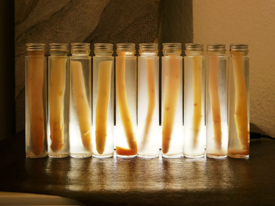 Hier könnte ich noch über den milchsauer fermentierten Spargel nachdenken, haltbar gemacht nach Art des Sauerkrauts. So eine – jetzt tatsächlich – an einen Penis erinnernde Konserve könnte dem empfindsamen Betrachter ein wenig Angst machen. Aber es ist doch Präsentation, ein Experiment mit Gemüse. Eine Feier seiner schönen Form, die es lohnt, bewahrt zu werden.